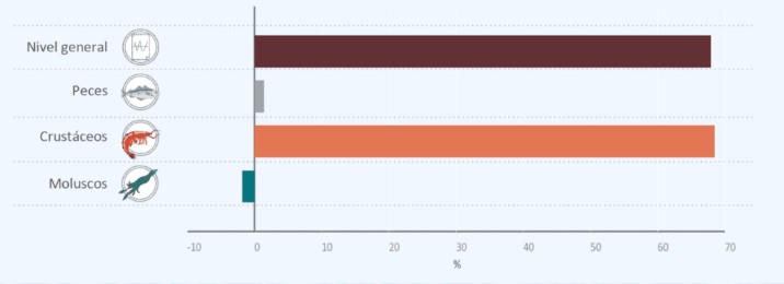 La variación más extrema del informe aparece en el grupo de crustáceos, donde se registró un aumento de 6.712,5% interanual.