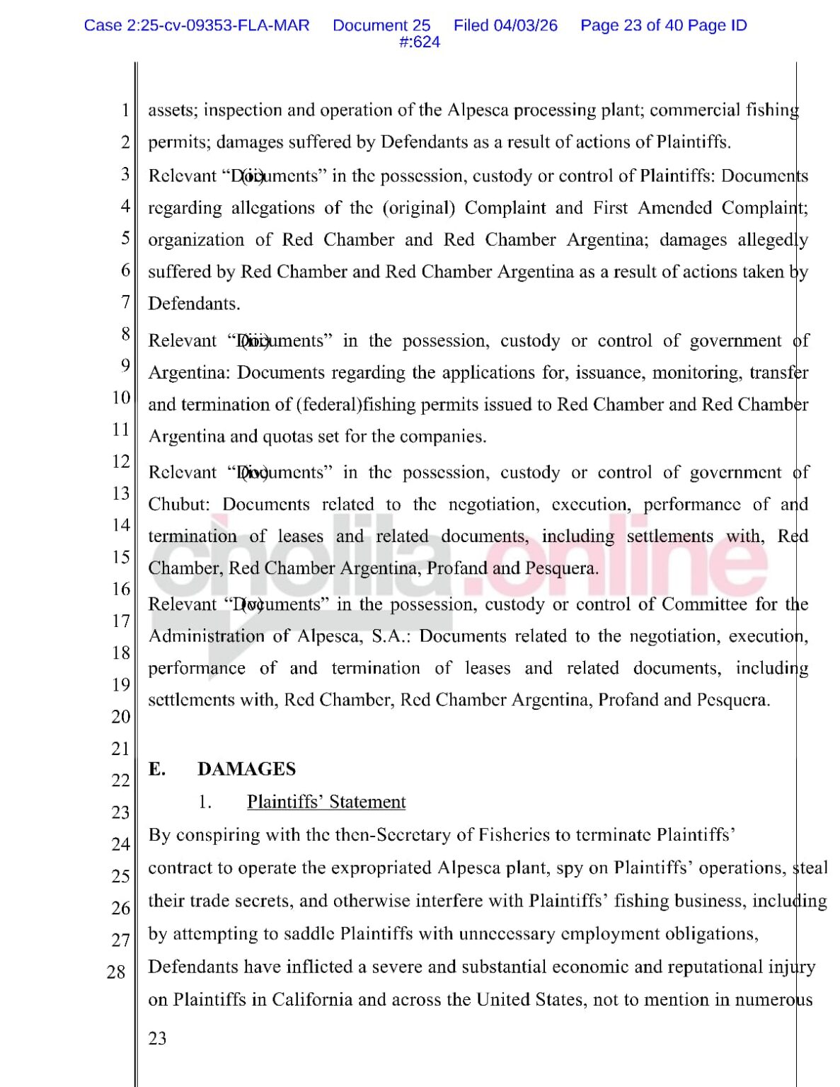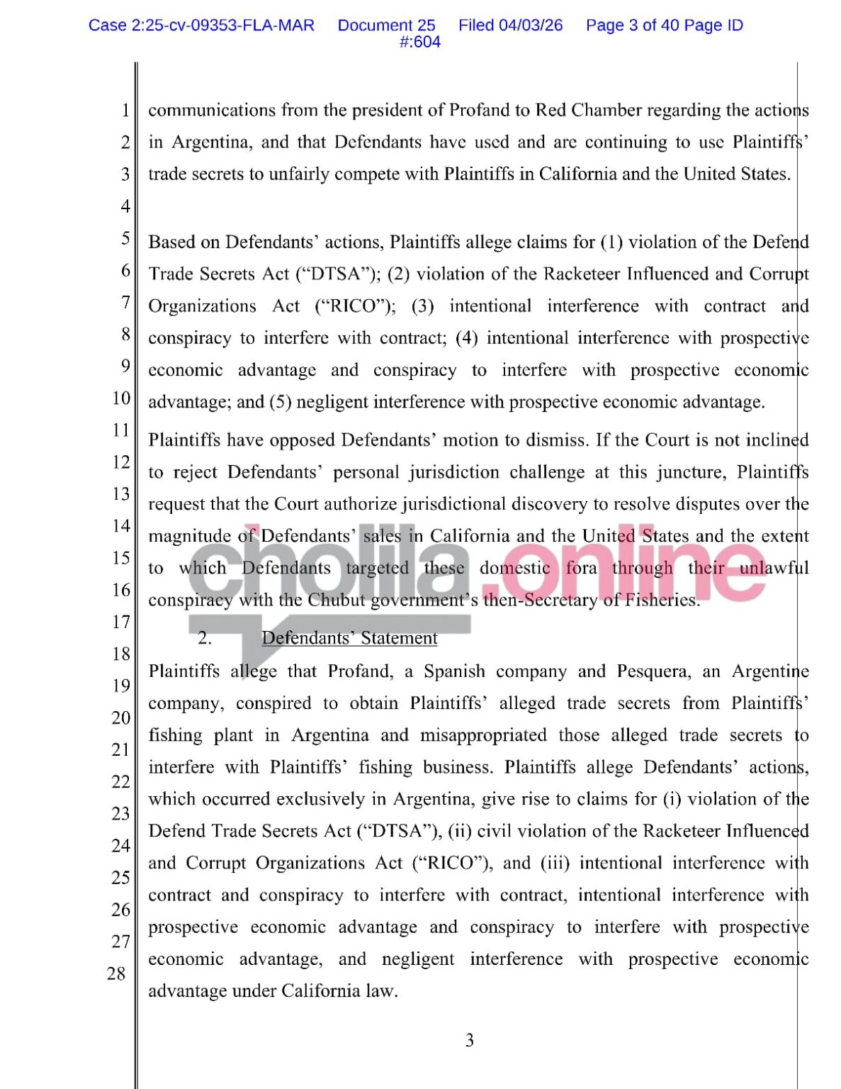 Red Chamber afirma haber invertido más de 50 millones de dólares para rehabilitar la infraestructura pesquera de Chubut. Ahora, la provincia queda expuesta a un litigio bajo leyes extremadamente severas en EE. UU., como la ley RICO (contra el crimen organizado) y la Ley de Secretos Comerciales (DTSA).