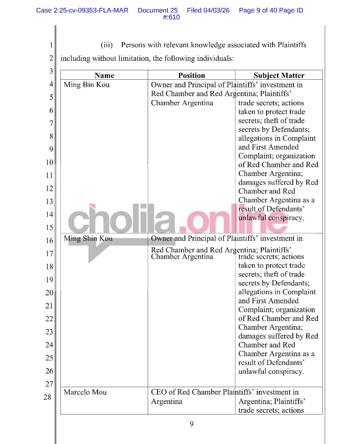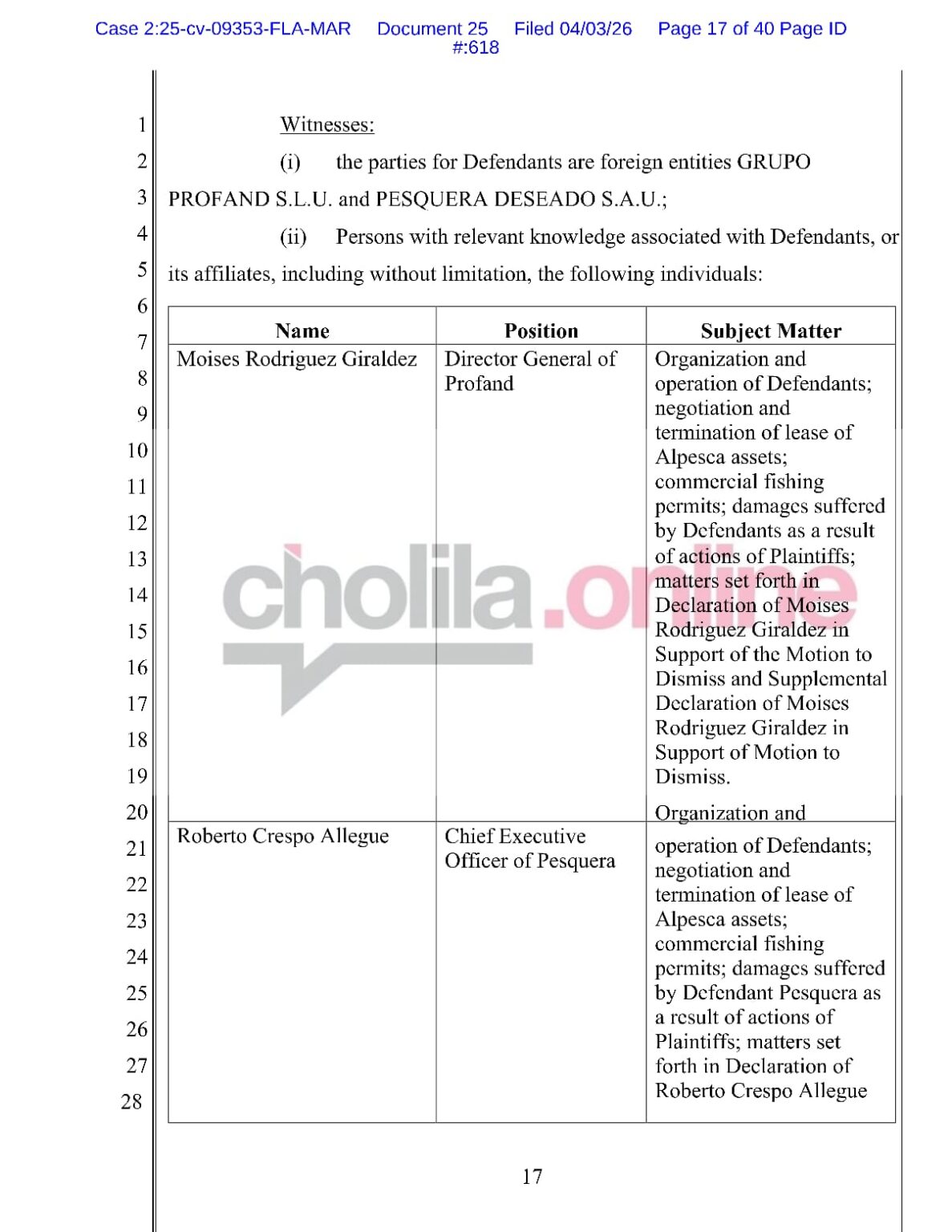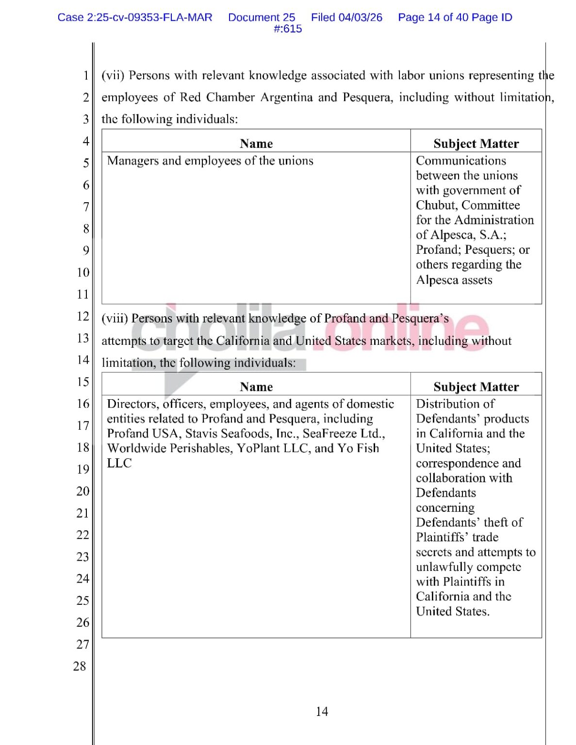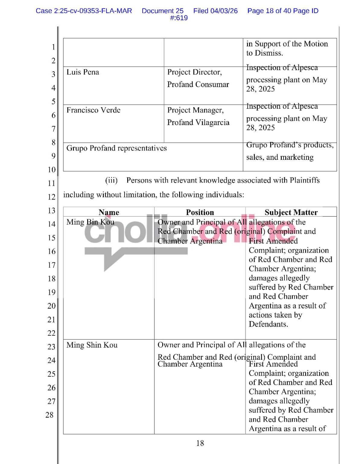 La justicia estadounidense no solo pone el foco en los mandos medios. La demanda incluye entre las personas con conocimiento relevante de estos hechos a la propia Oficina del Gobernador, mencionando explícitamente a Ignacio Torres en relación con las decisiones oficiales, comunicaciones y órdenes que derivaron en la terminación del contrato con Red Chamber para beneficiar supuestamente a Profand y Pesquera Deseado.