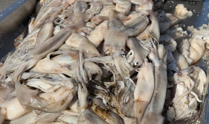 Es una muestra en vivo de la talla y la calidad del calamar que vienen capturando los poteros desde el 2 de enero, con volúmenes representativos.