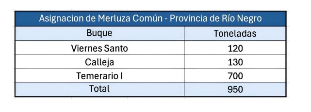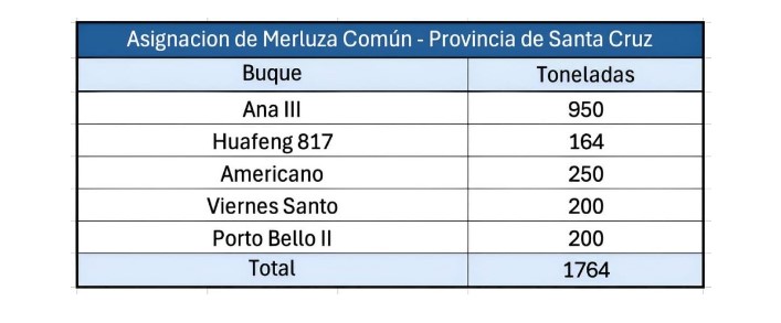 Se asignaron 950 toneladas de merluza común, distribuidas entre los siguientes buques: