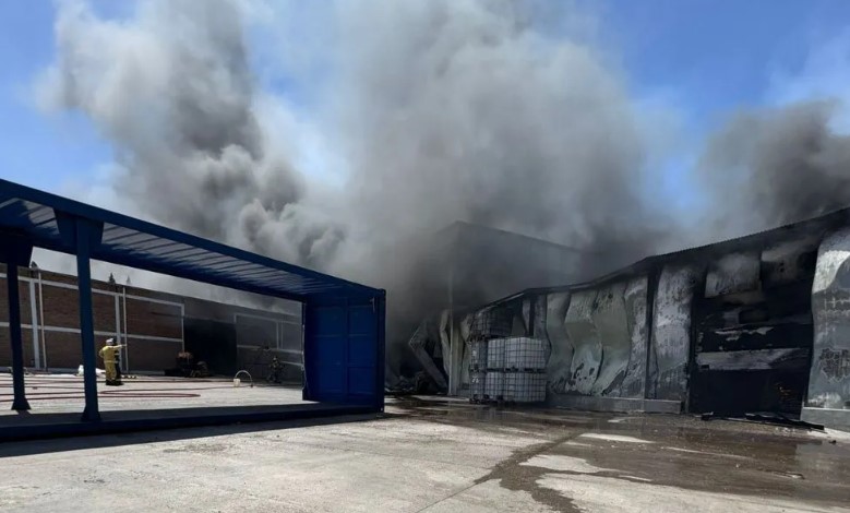 Allí explicó que el incendio afectó dos galpones de gran tamaño, con pérdidas totales en las estructuras alcanzadas por las llamas.