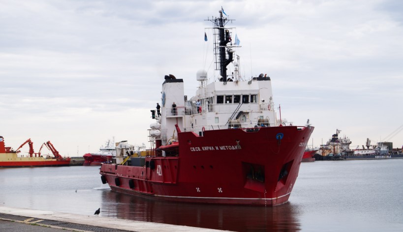 Y el buque de investigación científica “Santos Hermanos Cirilo y Metodio”, de la Armada de Bulgaria, en el marco de sus respectivas campañas antárticas.