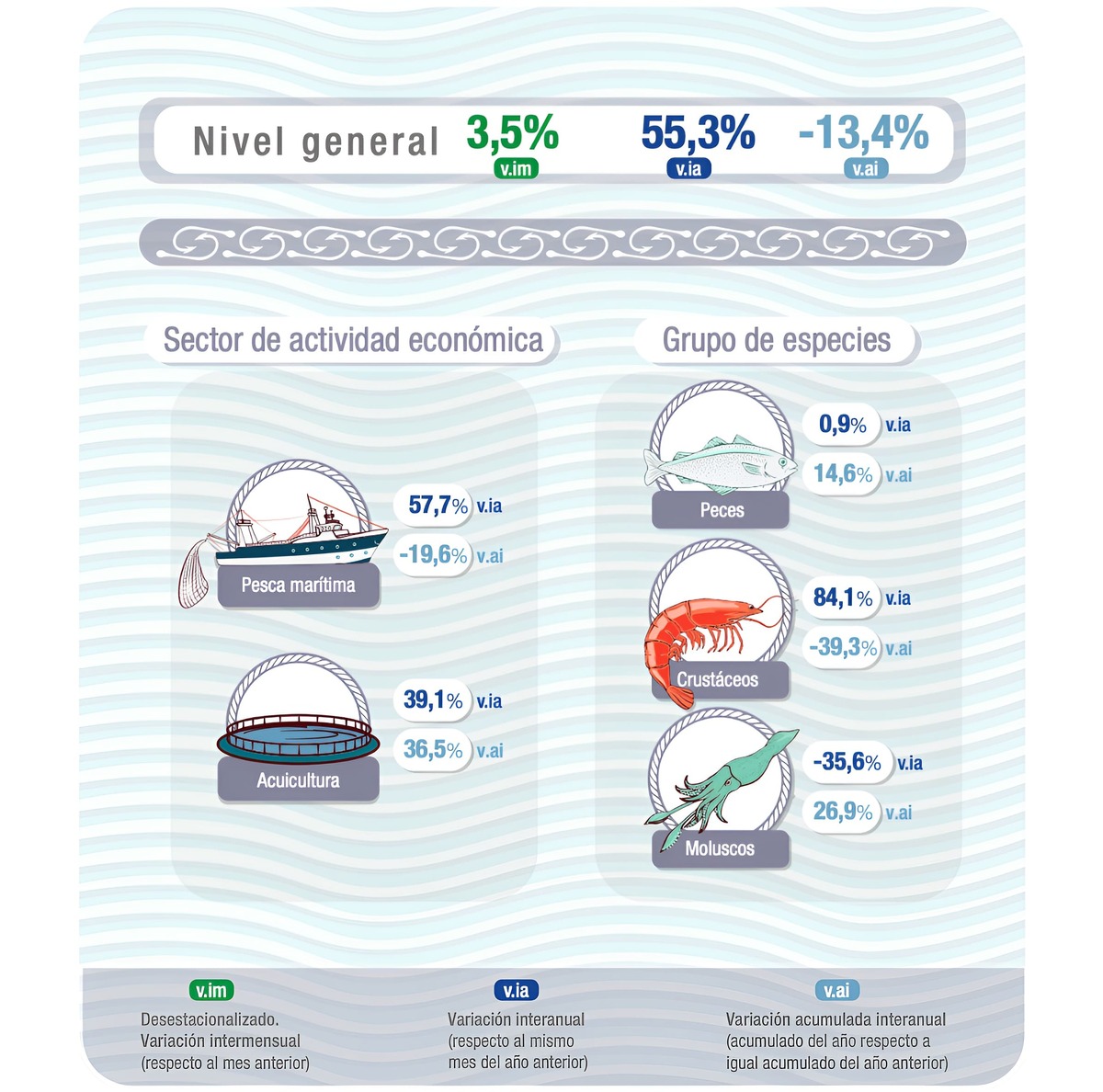 La mayor incidencia correspondió a los congeladores, responsables de casi el 47% de la variación total del índice de pesca marítima, mientras que los fresqueros aportaron alrededor del 11%.