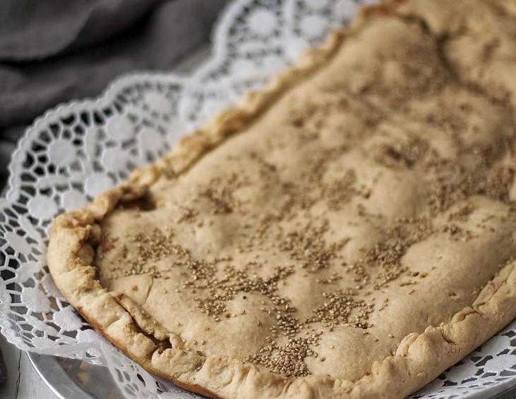 Pincelamos con el huevo batido y espolvoreamos con las semillas de sésamo.