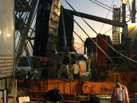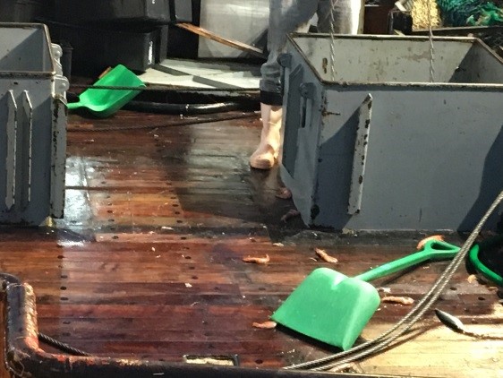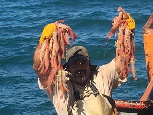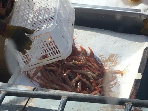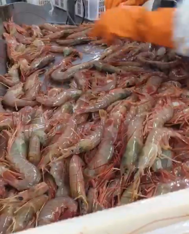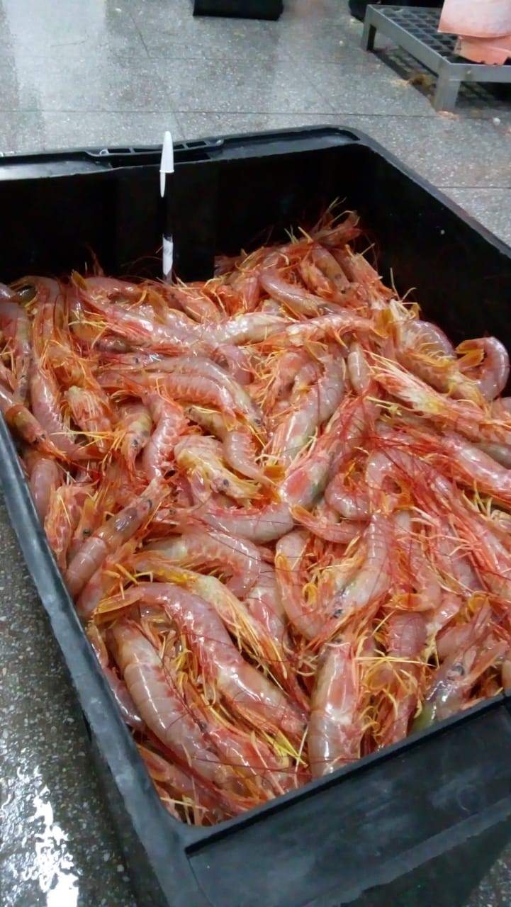 (Se podrán observar en las fotos el langostino entero en el barco)