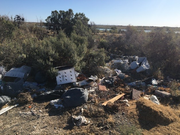 Haciendo una recorrida personal en el mes de febrero por TODOS los alrededores de Playa Unión, El Sombrerito, zona de El Elsa, costas del Río Chubut en cercanías del Puerto, pudimos comprobar el nivel elevado de desechos, desperdicios, basura que existe en cada metro cuadrado del ejido. Sin embargo nos llamó poderosamente la atención que entre las botellas descartables, pañales, lavarropas, bolsas de residuos, cartones, podas, escombros, etc, etc , NO habían desechos de langostinos.