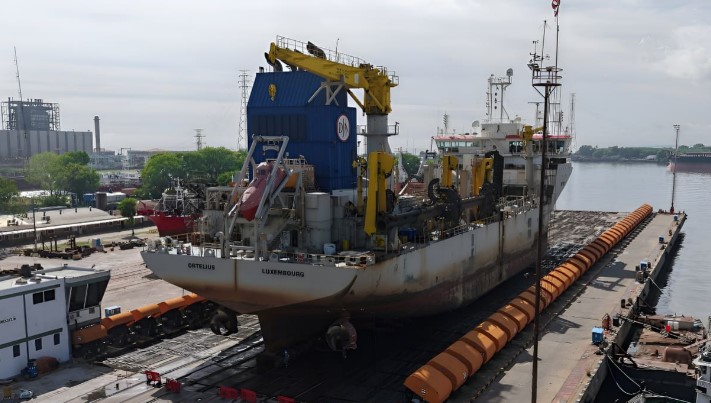 La draga Ortelius continúa desde el 9 de diciembre pasado con un plan integral de reparación y mantenimiento en dique seco.