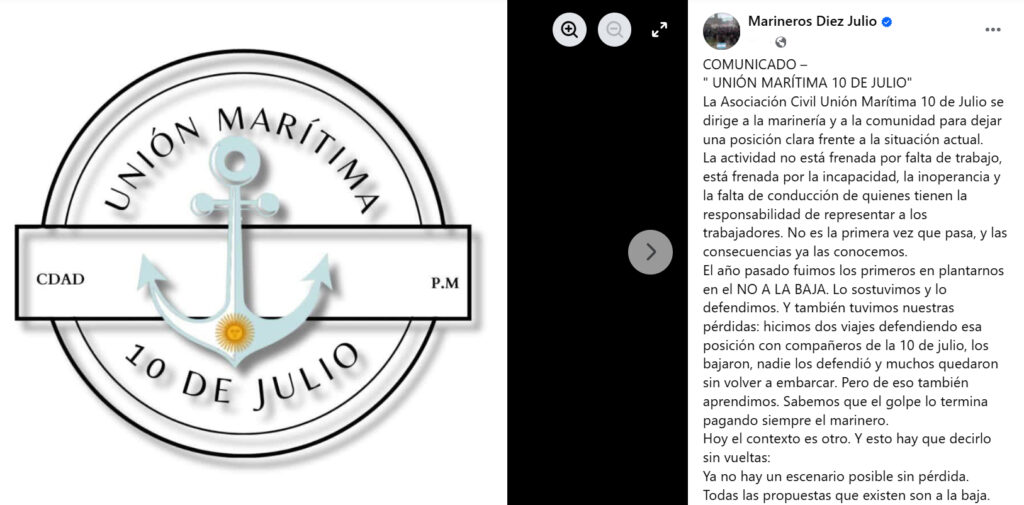 Desde la Asociación Civil Unión Marítima 10 de Julio explicaron que la decisión de salir a navegar no implica una aceptación de las condiciones actuales, las cuales califican como «a la baja». Por el contrario, se trata de una medida de supervivencia.